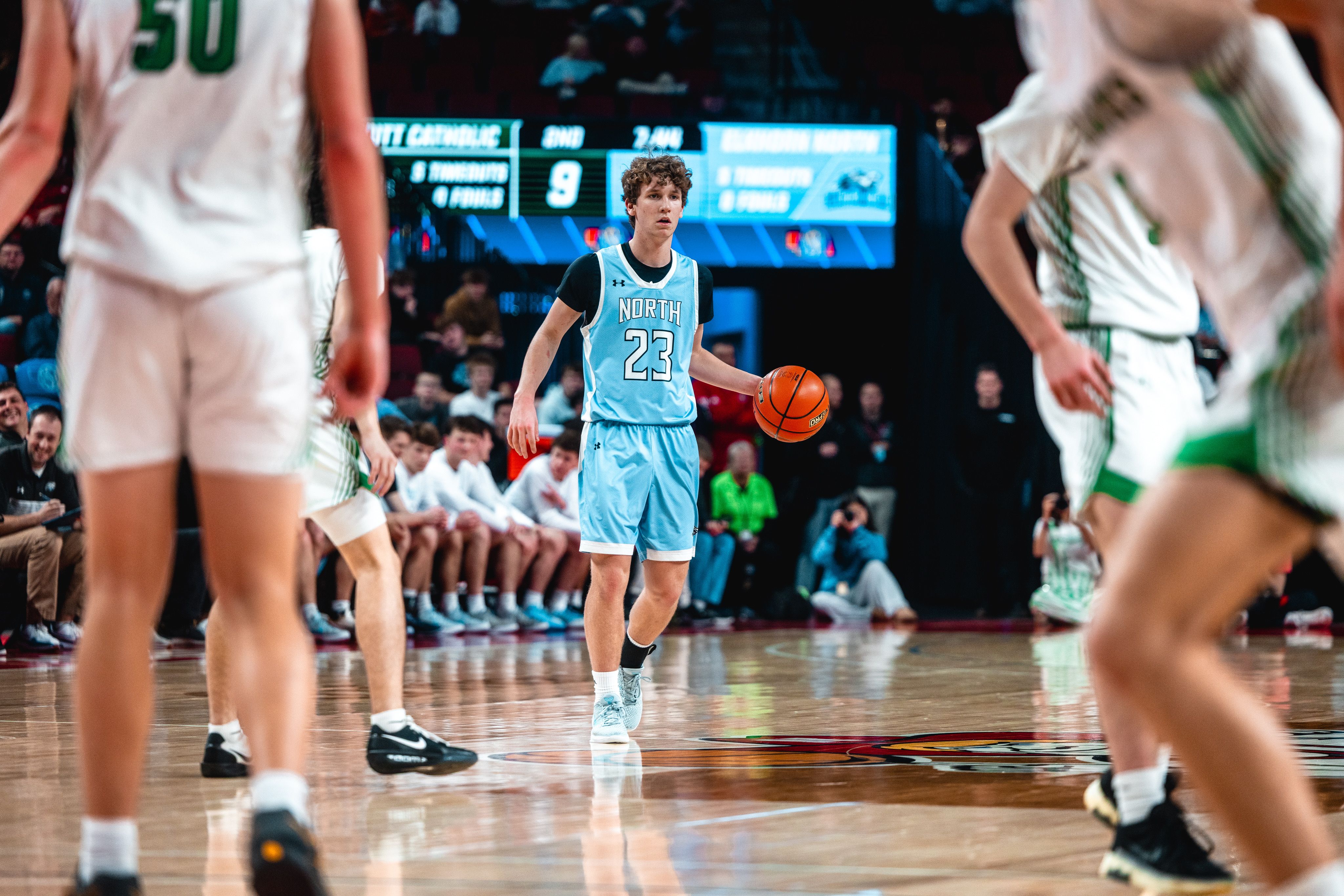 CLASS B | 6:15 PM | Elkhorn North (19-5) vs. Scottsbluff (23-4): Elkhorn North will make their first Class B state final appearance on Saturday after surviving a wild final minute of overtime to defeat three-time defending champion Omaha Skutt. Down 59-57, the Skyhawks were fouled twice in the last 26 seconds but didn’t make any of the four free throws, the last one intentionally with five seconds left. Kellen Murphy scored 17 points to lead the Wolves.